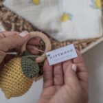 • Χειροποίητο πλεκτό παιχνίδι κουδουνίστρα σε σχέδιο λεμονάκι