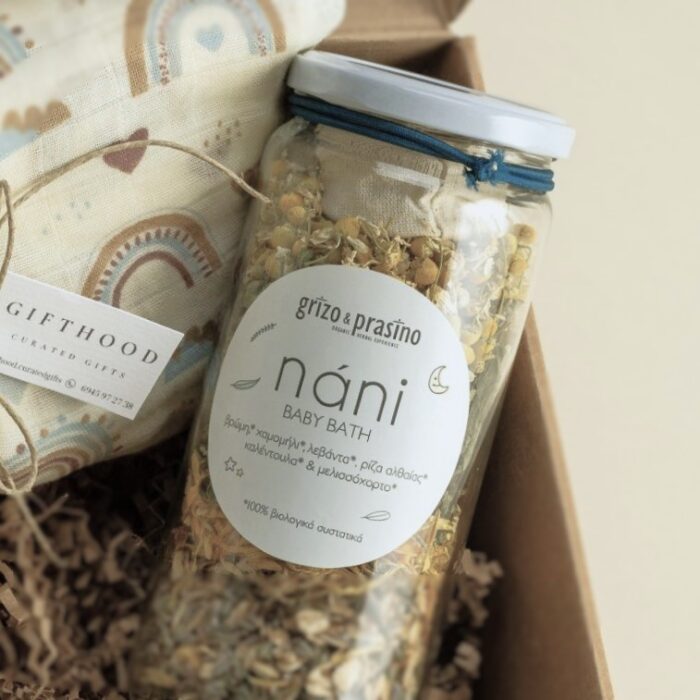 - Βοτανικό βιολογικό μείγμα“nani” baby bath GRIZO & PRASINO. Ιδανικό για τον καθαρισμό του ευαίσθητου βρεφικού δέρματος. Περιποιείται απαλά το δέρμα και προάγει τη χαλάρωση ώστε να προετοιμάσει για έναν ήρεμο ύπνο, μικρά και μεγάλα μωρά!