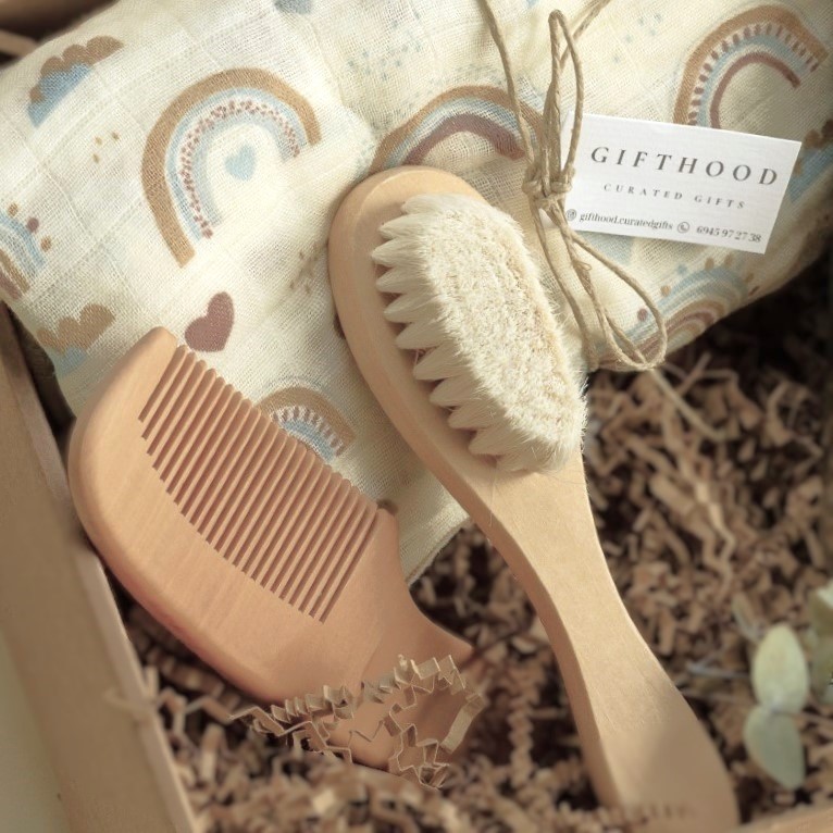 - Σετ ξύλινων αξεσουάρ, μαλακή βούρτσα και χτενούλα